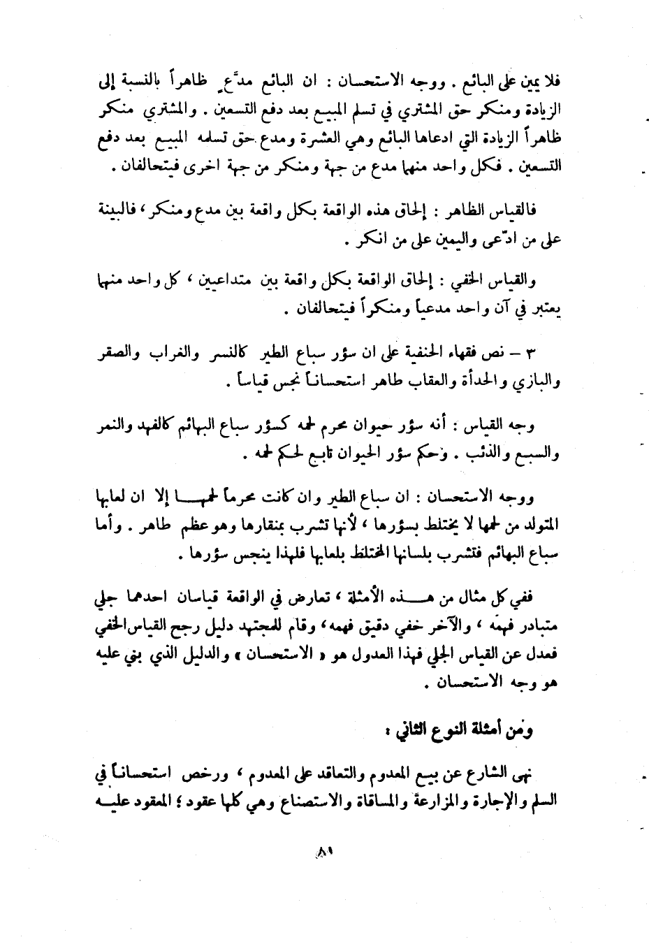 ففي كل مثال من هذه الأمثلة، تعارض في الواقعة قياسان أحدهما جلي متبادر فهمة، والآخر خفي دقيق فهمه، وقام للمجتهد دليل رجح القياس الخفي فعدل عن القياس الجلي فهذا العدول هو "الاستحسان" والدليل الذي بني عليه هو وجه الاستحسان.