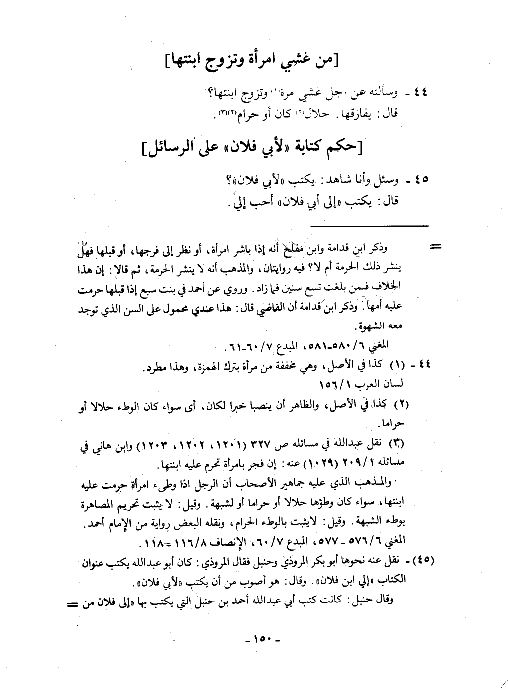 45 - وَسُئِلَ وَأَنا شَاهد يكْتب لأبي فلَان قَالَ يكْتب إِلَى أبي فلَان أحب إِلَيّ