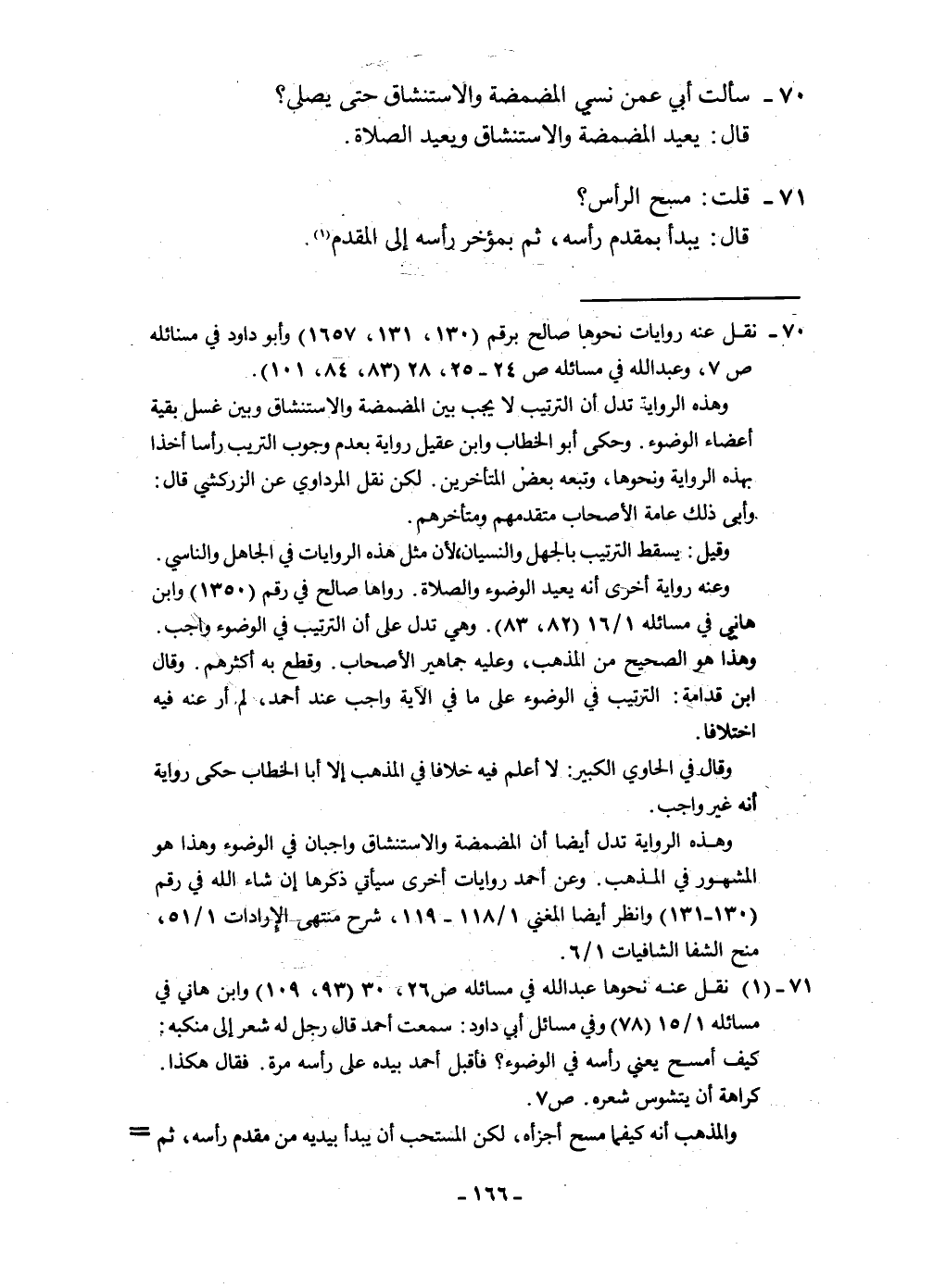 71 - قلت مسح الرَّأْس قَالَ يبْدَأ بِمقدم رَأسه ثمَّ بمؤخر رَأسه إِلَى الْمُقدم