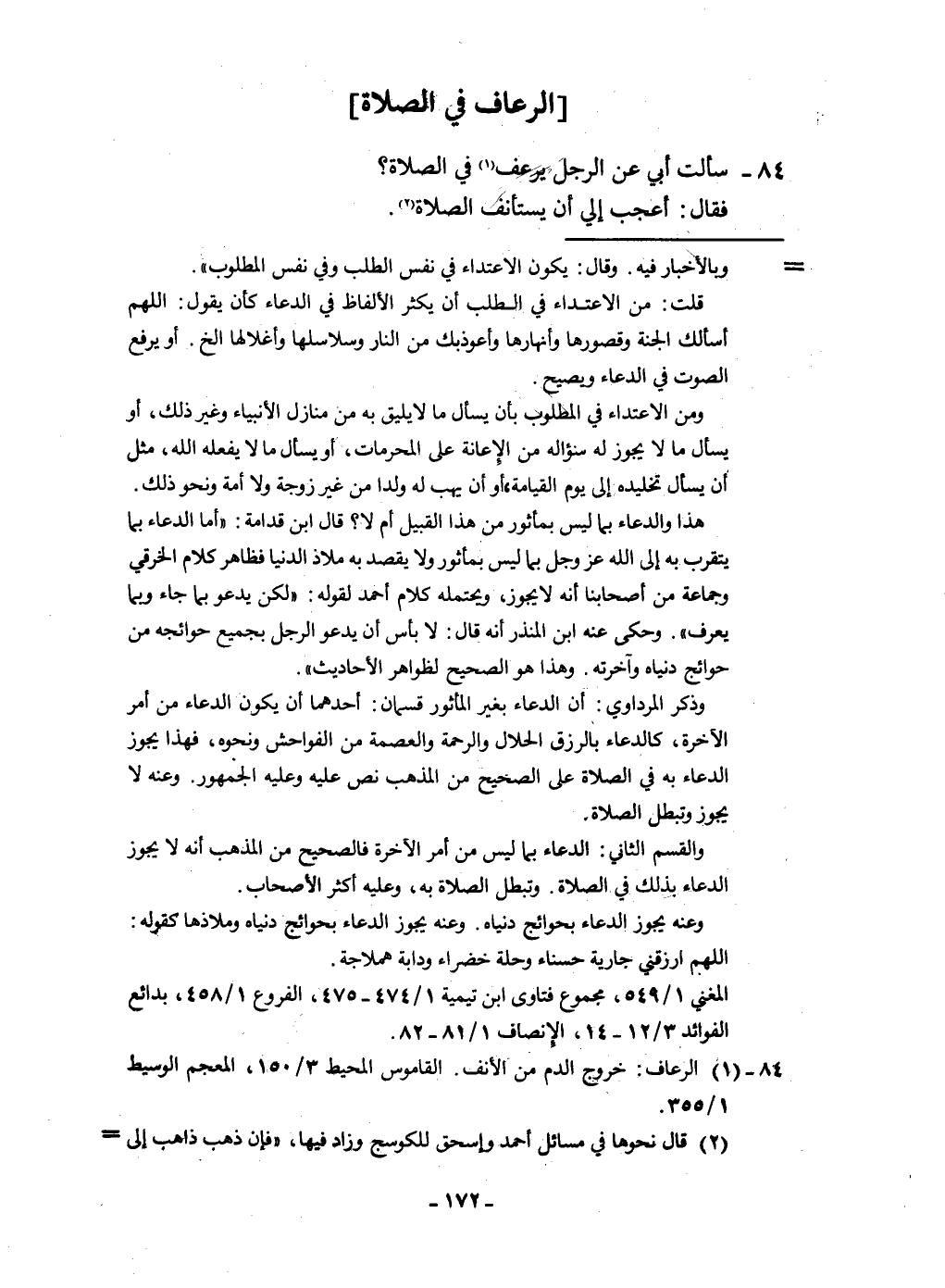 84 - سَأَلت أبي عَن الرجل يرعف فِي الصَّلَاة فَقَالَ أعجب إِلَيّ أَن يسْتَأْنف الصَّلَاة