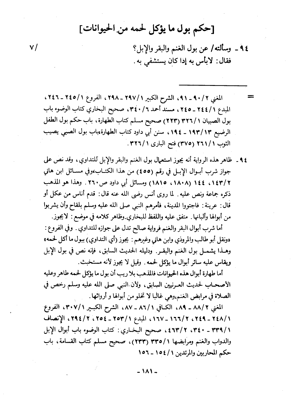 94 - وَسَأَلته عَن بَوْل الْغنم وَالْبَقر وَالْإِبِل فَقَالَ لَا بَأْس بِهِ إِذا كَانَ يستشفي بِهِ
