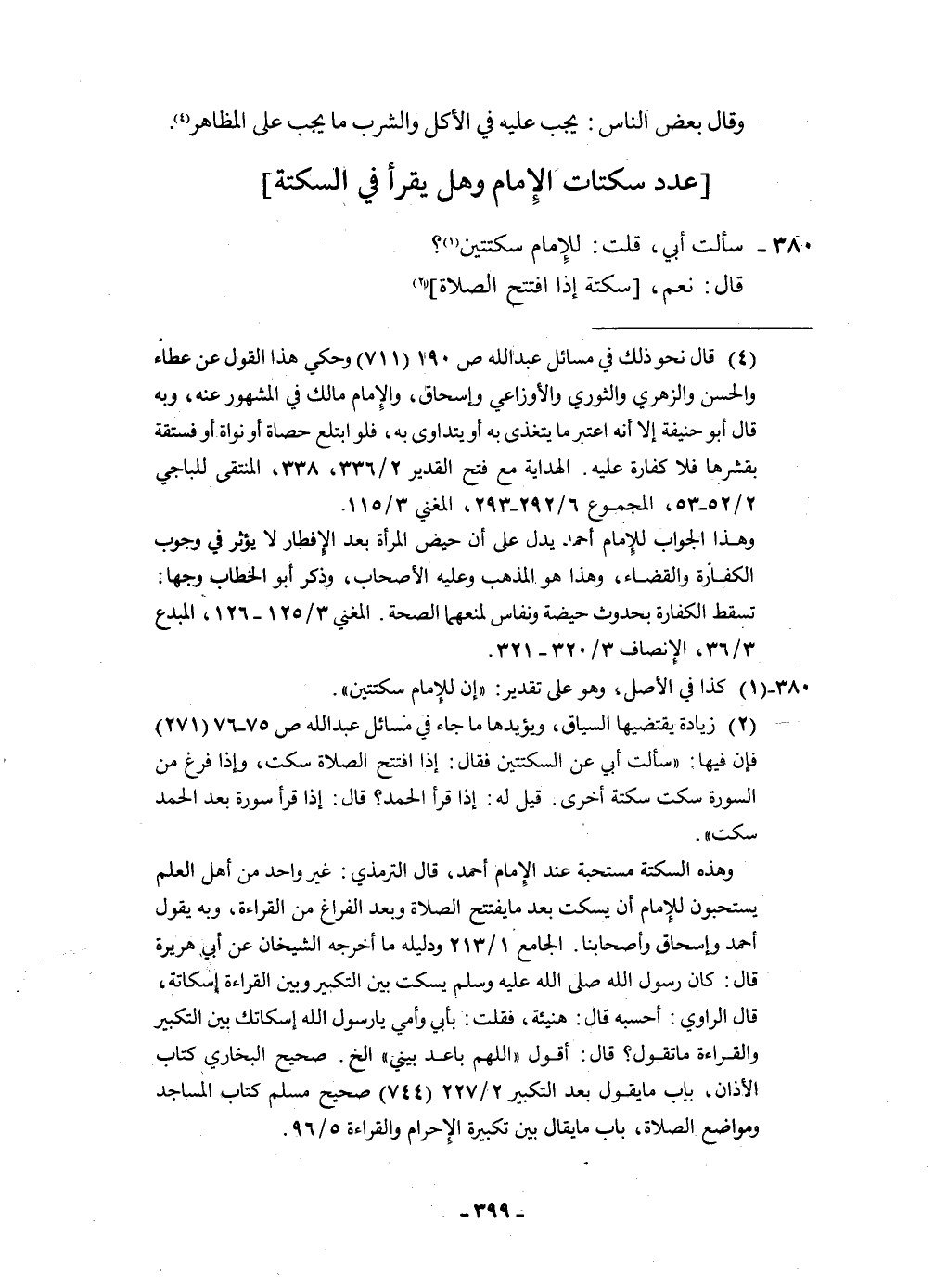 380 - سَأَلت أبي قلت للْإِمَام سكتتين قَالَ نعم سكتة إِذا افْتتح الصَّلَاة