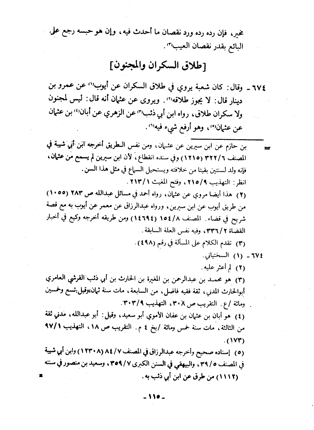 674 - وَقَالَ كَانَ شُعْبَة يروي فِي طَلَاق السَّكْرَان عَن أَيُّوب عَن عَمْرو بن دِينَار قَالَ لَا يجوز طَلَاقه ويروى عَن عُثْمَان أَنه قَالَ لَيْسَ لمَجْنُون وَلَا سَكرَان طَلَاق رَوَاهُ ابْن أبي ذِئْب عَن الزُّهْرِيّ عَن أبان بن عُثْمَان عَن عُثْمَان وَهُوَ أرفع شَيْء فِيهِ