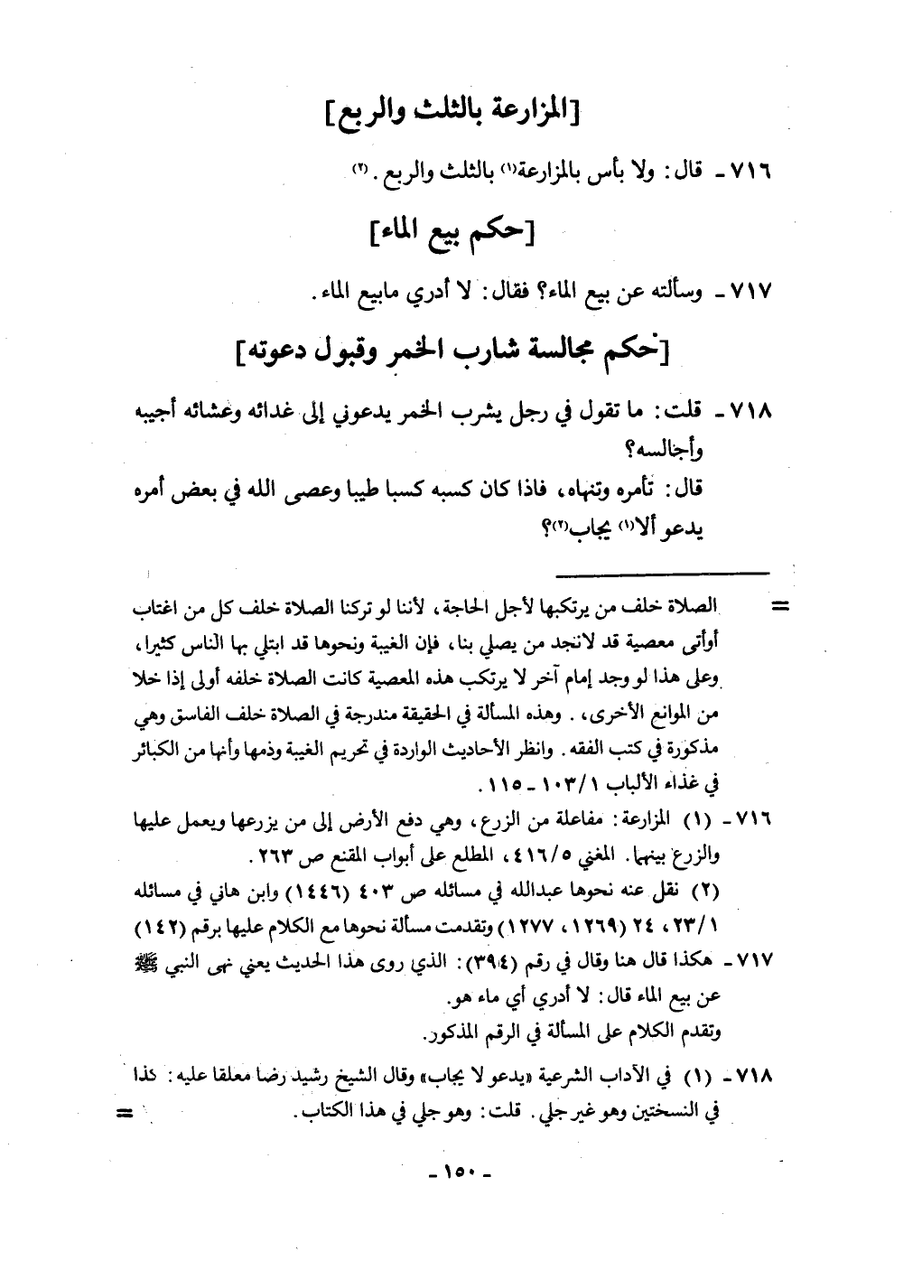 716 - قَالَ وَلَا بَأْس بالمزارعة بِالثُّلثِ وَالرّبع