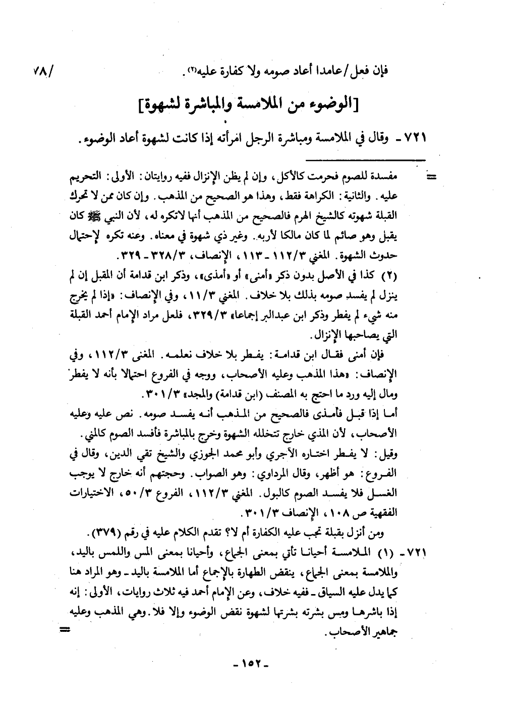 721 - وَقَالَ فِي الْمُلَامسَة ومباشرة الرجل امْرَأَته إِذا كَانَت لشَهْوَة أعَاد الْوضُوء