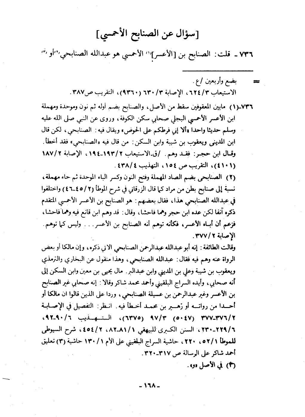 736 - قلت الصنابح بن الأعسر الأحمسي هُوَ عبد الله الصنَابحِي أَو