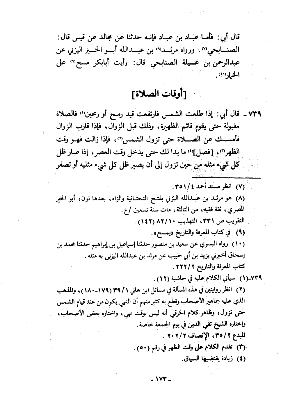 739 - قَالَ أبي إِذا طلعت الشَّمْس فارتفعت قيد رمح أَو رُمْحَيْنِ فَالصَّلَاة مَقْبُولَة حَتَّى يقوم قَائِم الظهيرة وَذَلِكَ قبل الزَّوَال فَإِذا قَارب الزَّوَال فَأمْسك عَن الصَّلَاة حَتَّى تَزُول الشَّمْس فَإِذا زَالَت فَهُوَ وَقت الظّهْر فصل مَا بدا لَك حَتَّى يدْخل وَقت الْعَصْر إِذا صَار ظلّ كل شَيْء مثله من حِين تَزُول إِلَى أَن يصير ظلّ كل شَيْء مثلَيْهِ أَو تصفر