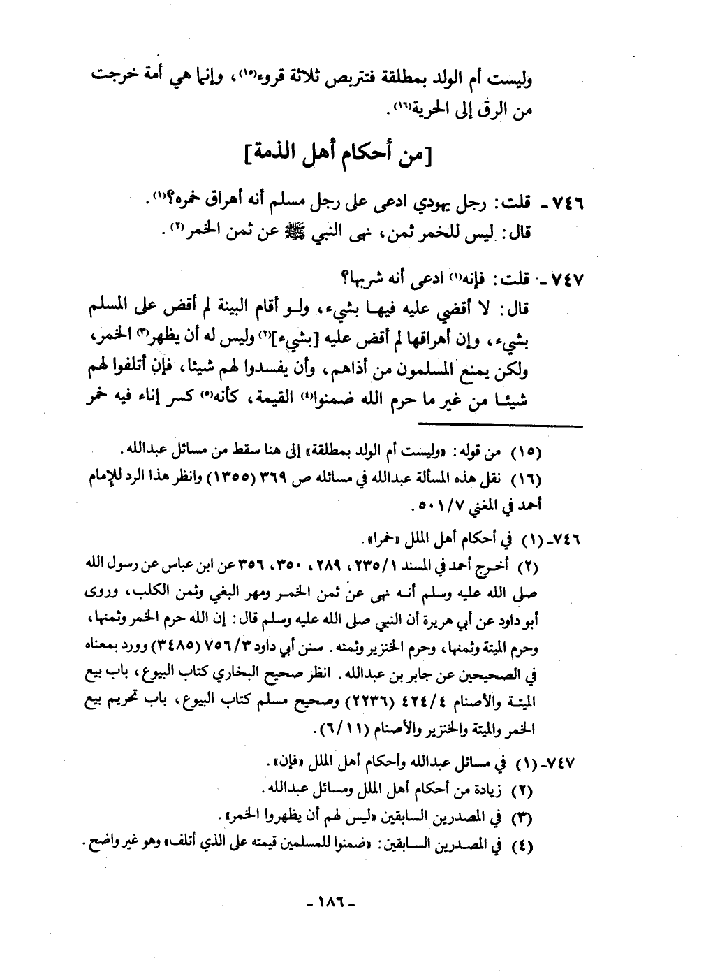 746 - قلت رجل يَهُودِيّ ادّعى على رجل مُسلم أَنه أهراق خمرة قَالَ لَيْسَ للخمر ثمن نهى النَّبِي صلى الله عَلَيْهِ وَسلم عَن ثمن الْخمر