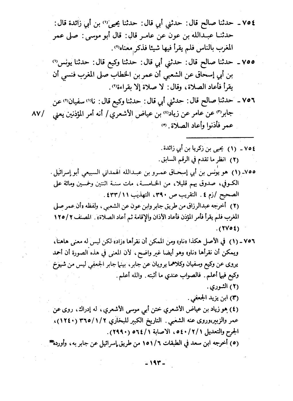 756 - حَدثنَا صَالح قَالَ حَدثنِي أبي قَالَ حَدثنَا وَكِيع قَالَ نَا سُفْيَان عَن جَابر عَن عَامر عَن زِيَاد بن عِيَاض الْأَشْعَرِيّ أَنه أَمر المؤذنين يَعْنِي عمر فأذنوا وَأعَاد الصَّلَاة