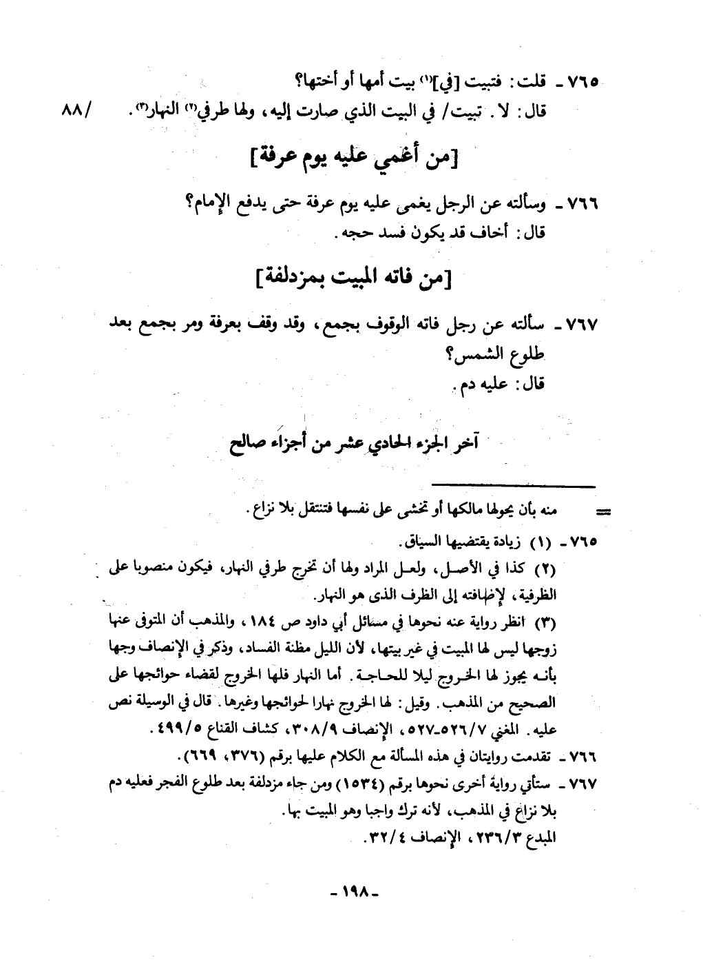 767 - سَأَلته عَن رجل فَاتَهُ الْوُقُوف بِجمع وَقد وقف بِعَرَفَة وَمر بِجمع بعد طُلُوع الشَّمْس قَالَ عَلَيْهِ دم