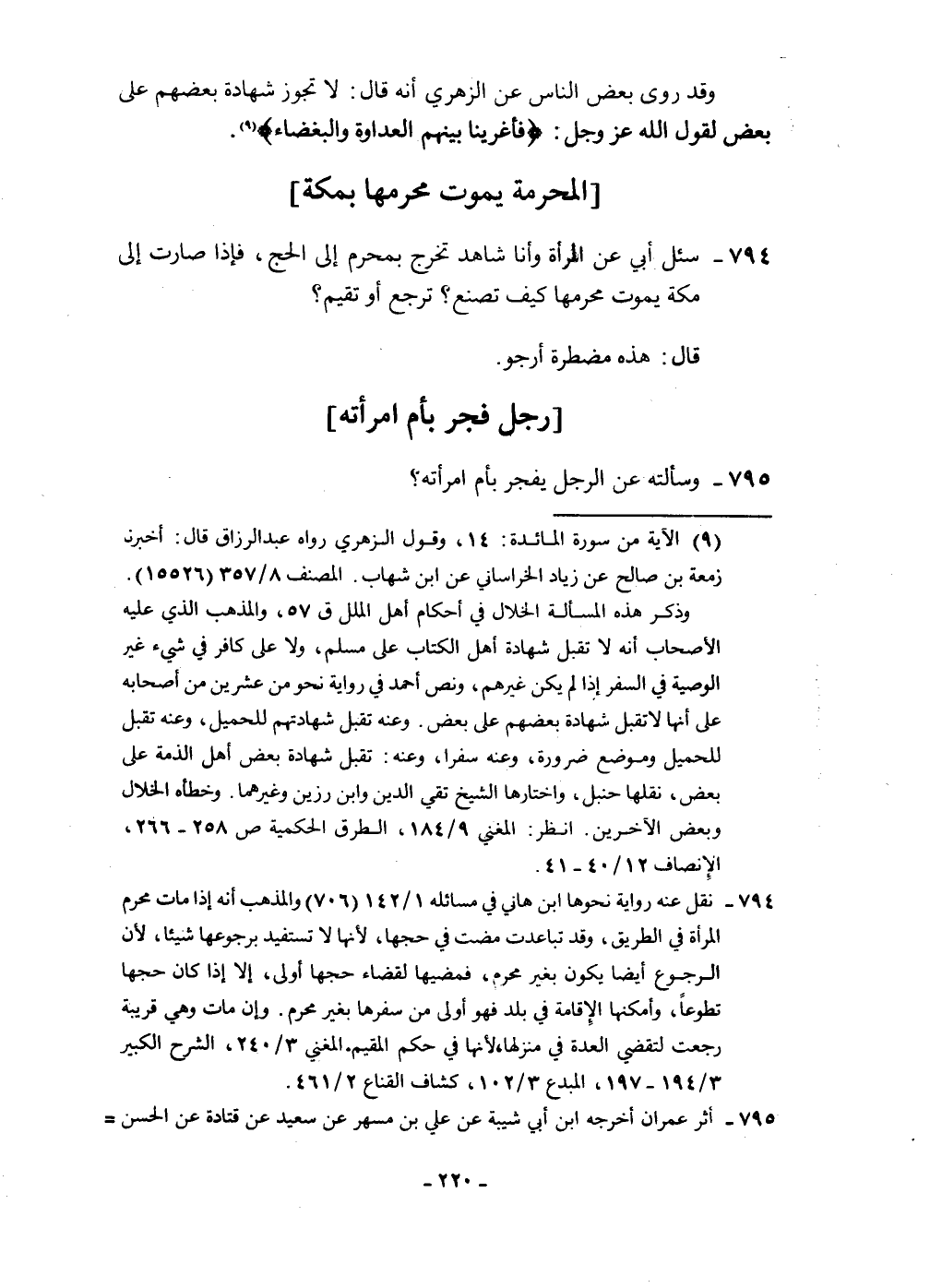794 - سُئِلَ أبي عَن الْمَرْأَة وَأَنا شَاهد تخرج بِمحرم إِلَى الْحَج فَإِذا صَارَت إِلَى مَكَّة يَمُوت محرمها كَيفَ تصنع ترجع أَو تقيم قَالَ هَذِه مضطرة أَرْجُو