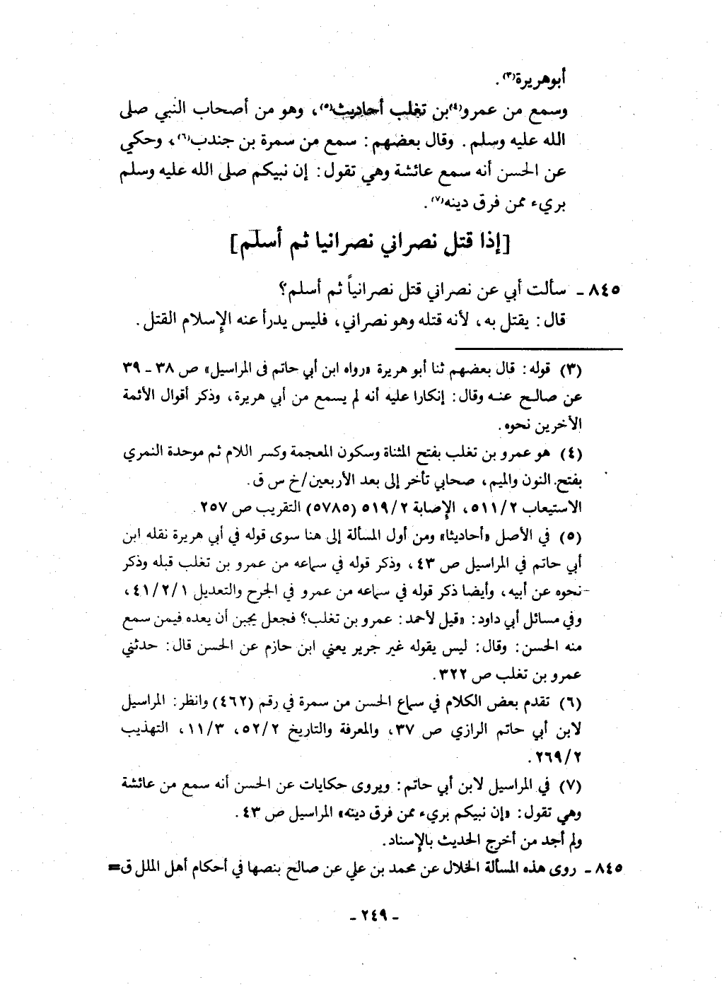 إِذا قتل نَصْرَانِيّ نَصْرَانِيّا ثمَّ أسلم