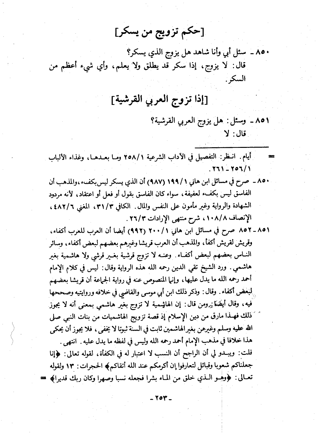 851 - وَسُئِلَ هَل يُزَوّج الْعَرَبِيّ القرشية قَالَ لَا