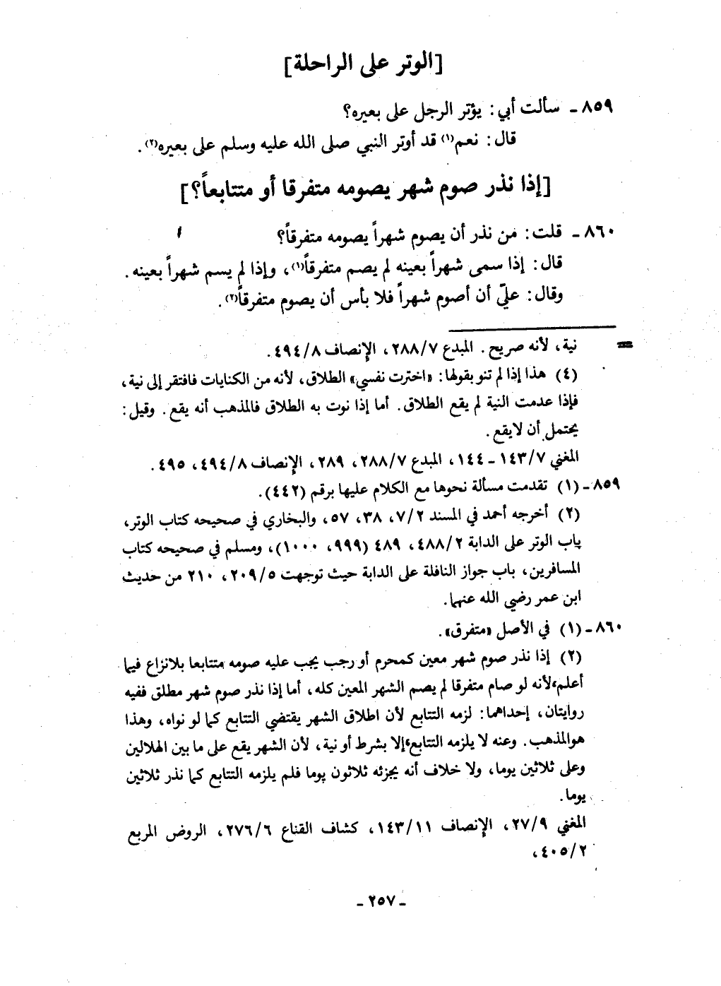 860 - قلت من نذر أَن يَصُوم شهرا يَصُومهُ مُتَفَرقًا قَالَ إِذا سمى شهر بِعَيْنِه لم يصم مُتَفَرقًا وَإِذا لم يسم شهرا بِعَيْنِه وَقَالَ عَليّ أَن أَصوم شهرا فَلَا بَأْس أَن يَصُوم مُتَفَرقًا