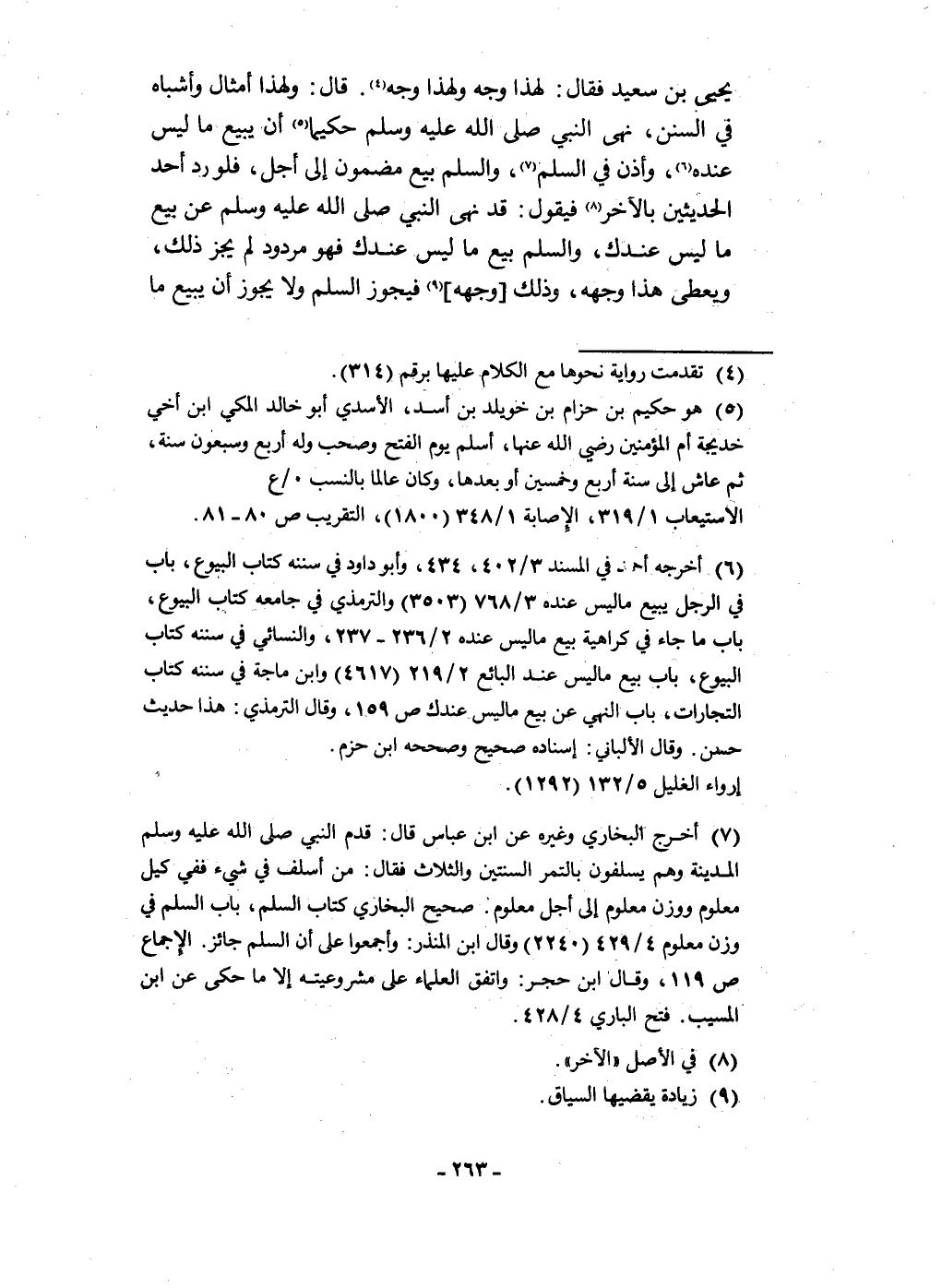 يحيى بن سعيد فَقَالَ لهَذَا وَجه وَلِهَذَا وَجه قَالَ وَلِهَذَا أَمْثَال وَأَشْبَاه فِي السّنَن نهى النَّبِي صلى الله عَلَيْهِ وَسلم حكيما أَن يَبِيع مَا لَيْسَ عِنْده وَأذن فِي السّلم وَالسّلم بيع مَضْمُون إِلَى أجل فَلَو رد أحد الْحَدِيثين بِالْآخرِ فَيَقُول قد نهى النَّبِي صلى الله عَلَيْهِ وَسلم عَن بيع مَا لَيْسَ عنْدك وَالسّلم بيع مَا لَيْسَ عنْدك فَهُوَ مَرْدُود لم يجز ذَلِك وَيُعْطى هَذَا وَجهه وَذَلِكَ وَجهه فَيجوز السّلم وَلَا يجوز أَن يَبِيع مَا