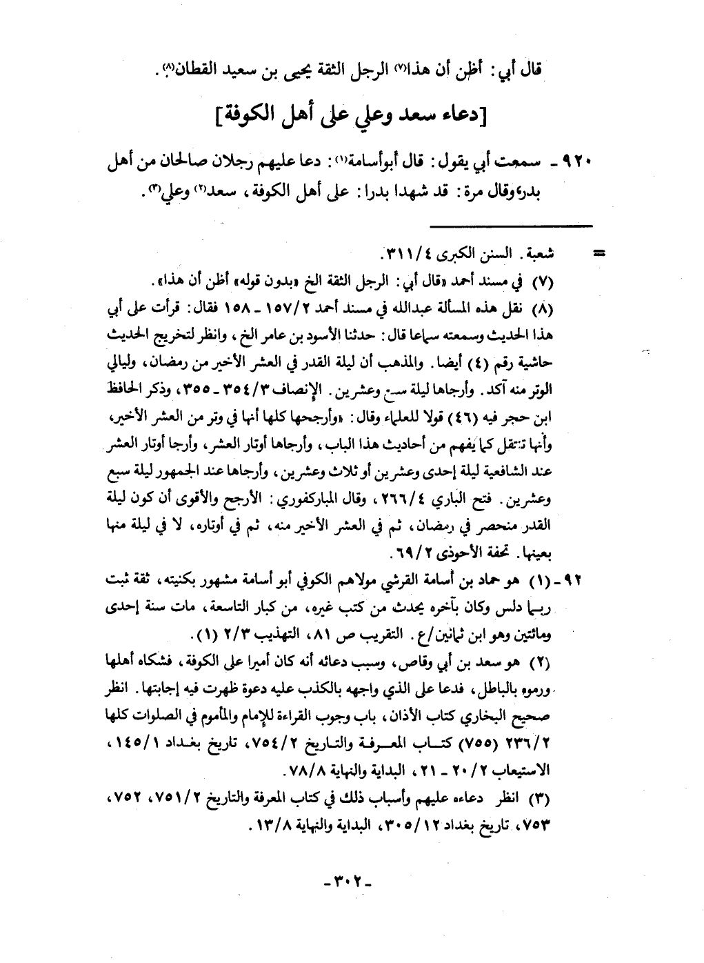 920 - سَمِعت أبي يَقُول قَالَ أَبُو أُسَامَة دَعَا عَلَيْهِم رجلَانِ صالحان من أهل بدر وَقَالَ مرّة قد شَهدا بَدْرًا على أهل الْكُوفَة سعد وَعلي