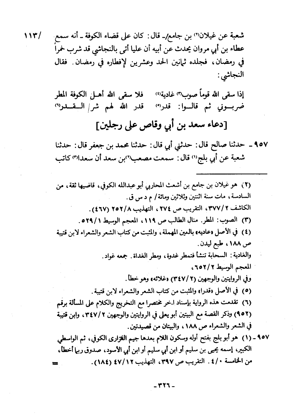 957 - حَدثنَا صَالح قَالَ حَدثنِي أبي قَالَ حَدثنَا مُحَمَّد بن جَعْفَر قَالَ حَدثنَا شُعْبَة عَن أبي بلج قَالَ سَمِعت مُصعب بن سعد أَن سَعْدا كَاتب