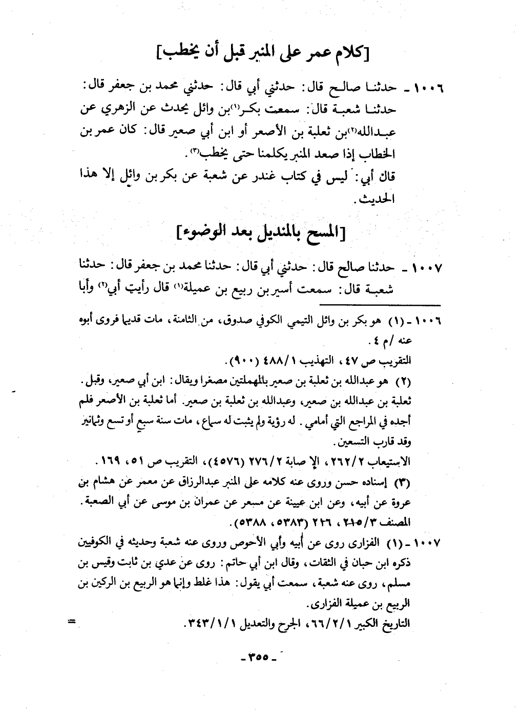 1007 - حَدثنَا صَالح قَالَ حَدثنِي أبي قَالَ حَدثنَا مُحَمَّد بن جَعْفَر قَالَ حَدثنَا شُعْبَة قَالَ سَمِعت أَسِير بن ربيع بن عميلة قَالَ رَأَيْت أبي وَأَبا