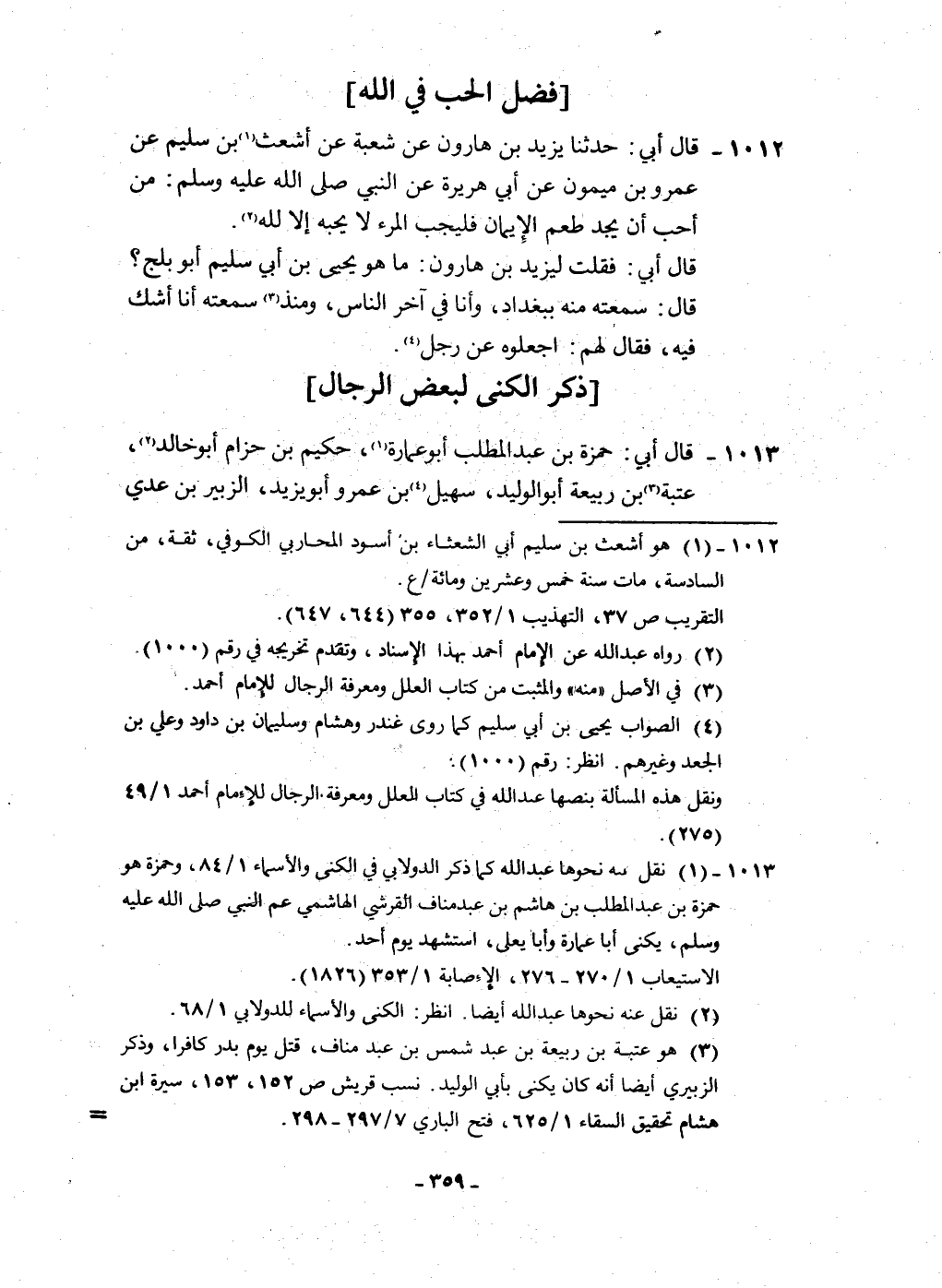 1013 - قَالَ أبي حَمْزَة بن عبد الْمطلب أَبُو عمَارَة حَكِيم بن حزَام أَبُو خَالِد عتبَة بن ربيعَة أَبُو الْوَلِيد سُهَيْل بن عَمْرو وَأَبُو يزِيد الزبير بن عدي