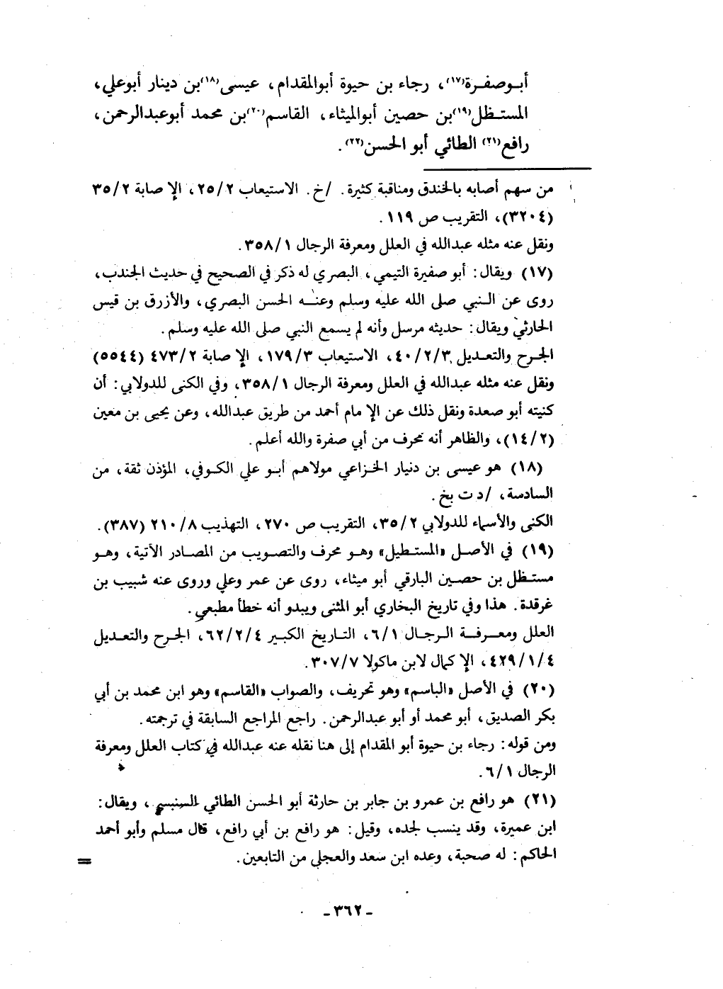 أَبُو صفرَة رَجَاء بن حَيْوَة أَبُو الْمِقْدَام عِيسَى بن دِينَار أَبُو عَليّ المستظل بن حُصَيْن أَبُو الميثاء الْقَاسِم بن مُحَمَّد أَبُو عبد الرَّحْمَن رَافع الطَّائِي أَبُو الْحسن