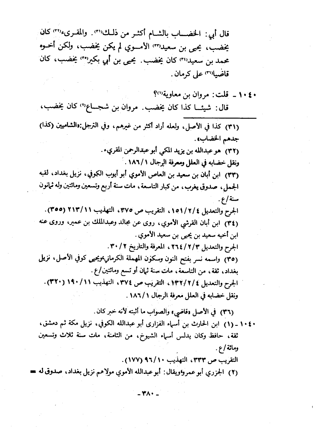 1040 - قلت مَرْوَان بن مُعَاوِيَة قَالَ شَيْئا كَذَا كَانَ يخضب مَرْوَان بن شُجَاع كَانَ يخضب