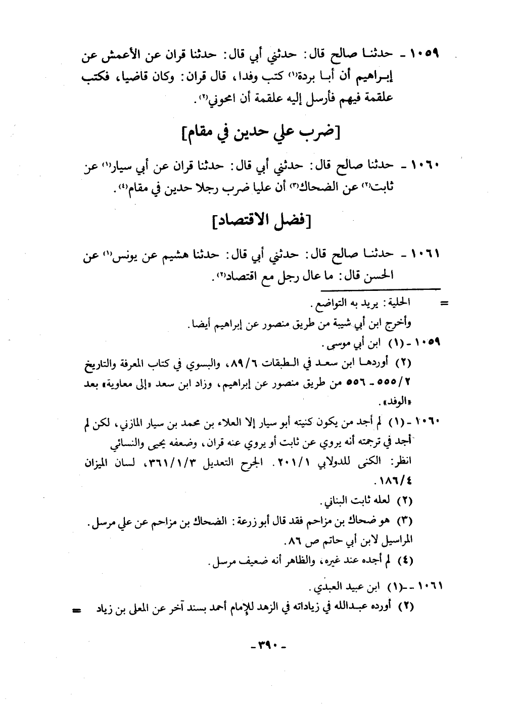 1061 - حَدثنَا صَالح قَالَ حَدثنِي أبي قَالَ حَدثنَا هشيم عَن يُونُس عَن الْحسن قَالَ مَا عَال رجل مَعَ اقتصاد