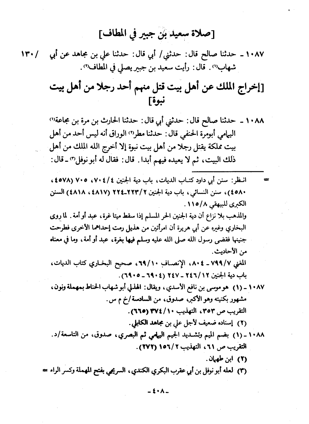1087 - حَدثنَا صَالح قَالَ حَدثنِي أبي قَالَ حَدثنَا عَليّ بن مُجَاهِد عَن أبي شهَاب قَالَ رَأَيْت سعيد بن جُبَير يُصَلِّي فِي المطاف