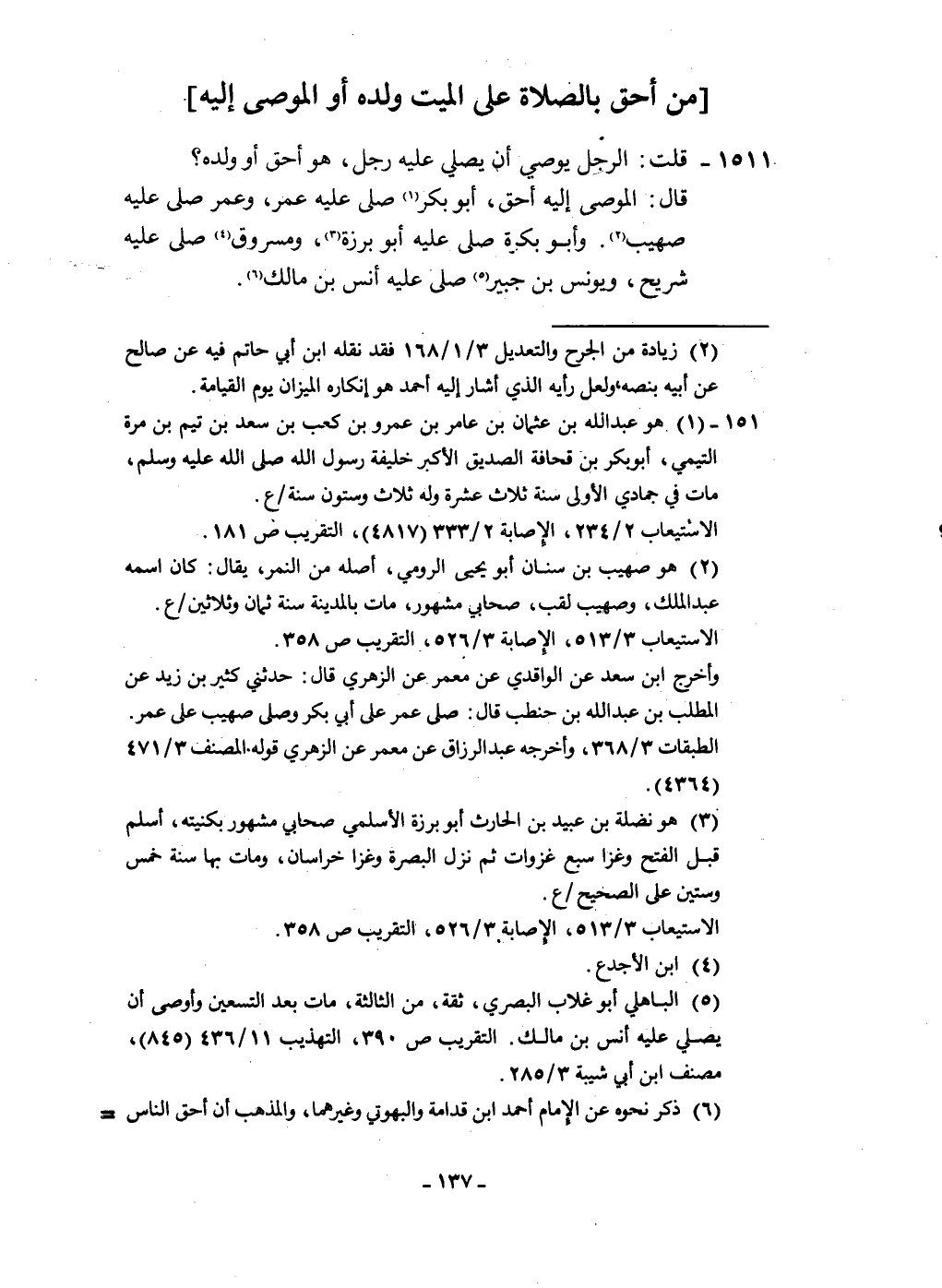 1511 - قلت الرجل يُوصي أَن يُصَلِّي عَلَيْهِ رجل هُوَ أَحَق أَو وَلَده
