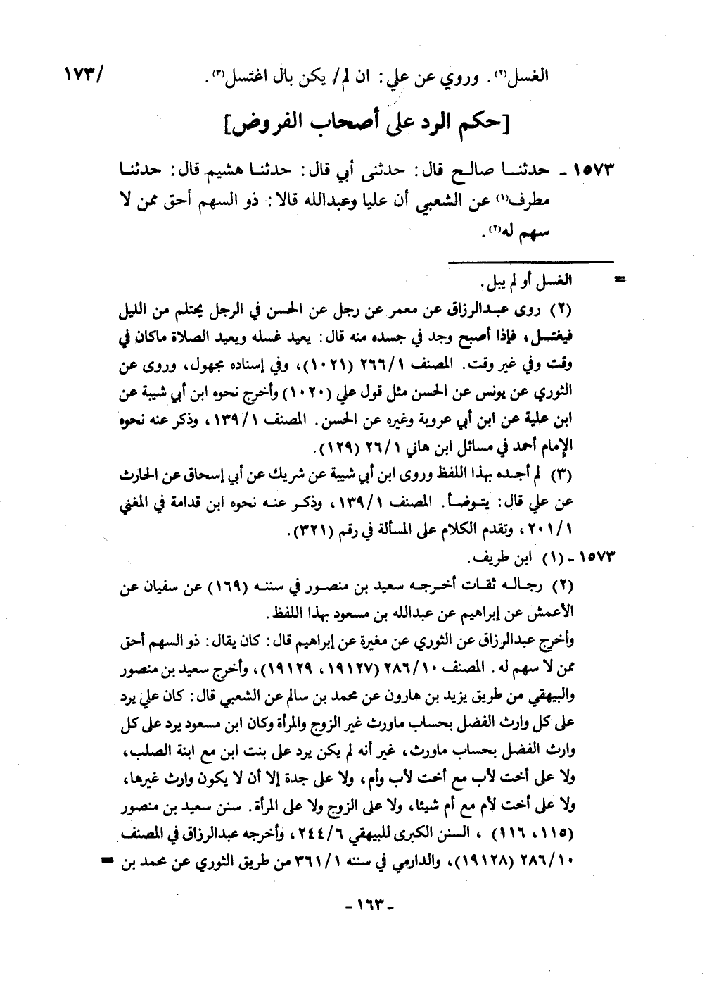 1573 - حَدثنَا صَالح قَالَ حَدثنِي أبي قَالَ حَدثنَا هشيم قَالَ حَدثنَا مطرف عَن الشّعبِيّ أَن عليا وعبد الله قَالَا ذُو السهْم أَحَق مِمَّن لَا سهم لَهُ