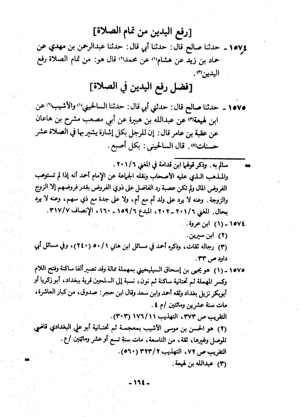 1574 - حَدثنَا صَالح قَالَ حَدثنَا أبي قَالَ حَدثنَا عبد الرحمن بن مهْدي عَن حَمَّاد بن زيد عَن هِشَام عَن مُحَمَّد قَالَ هُوَ من تَمام الصَّلَاة رفع الْيَدَيْنِ