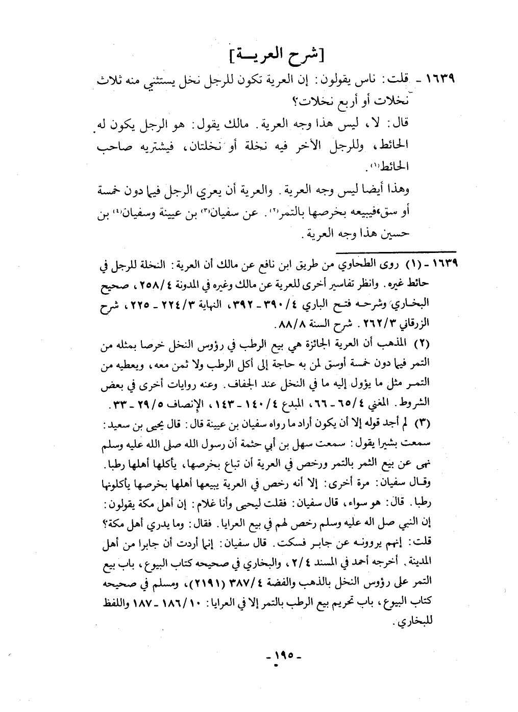 1639 - قلت نَاس يَقُولُونَ إِن الْعرية تكون للرجل نخل يَسْتَثْنِي مِنْهُ ثَلَاث نخلات أَو أَربع نخلات