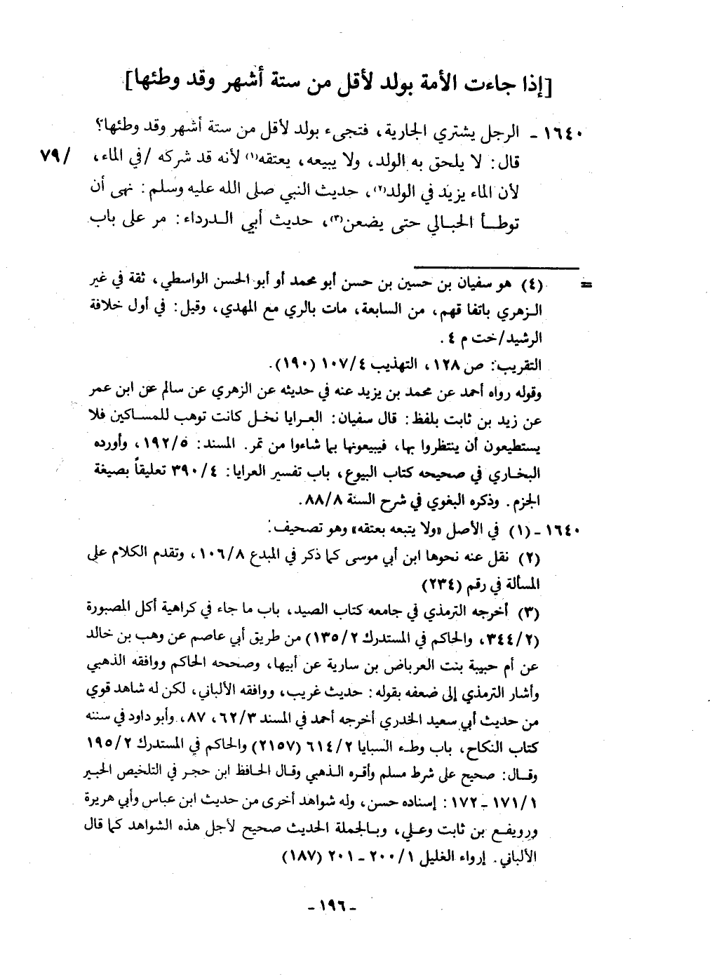1640 - الرجل يَشْتَرِي الْجَارِيَة فتجئ بِولد لأَقل من سِتَّة أشهر وَقد وَطئهَا