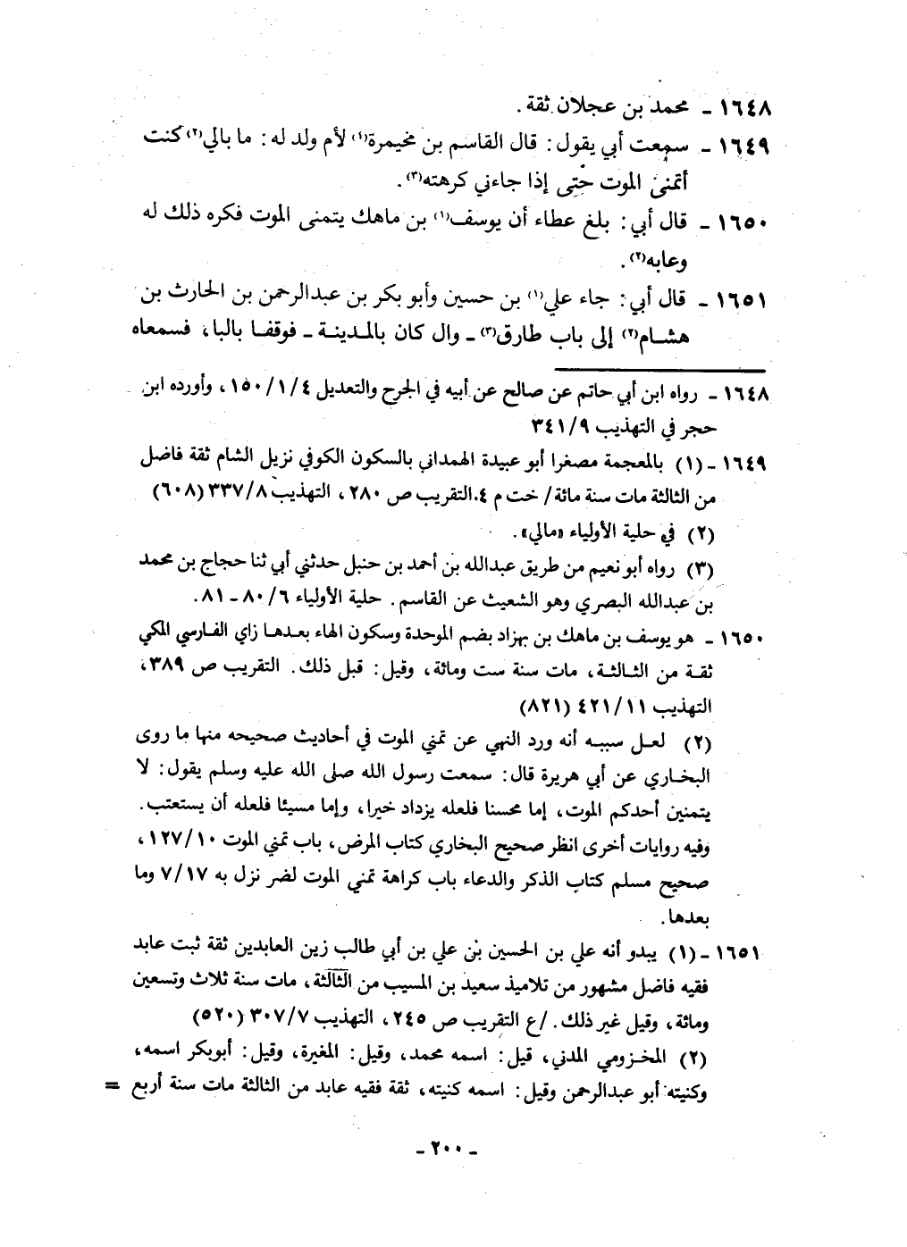 1650 - قَالَ أبي بلغ عَطاء أَن يُوسُف بن مَاهك يتَمَنَّى الْمَوْت فكره ذَلِك لَهُ وعابه
