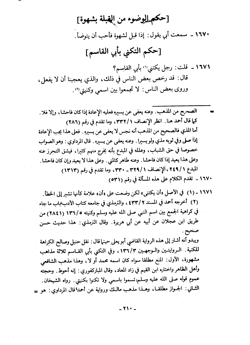 1670 - سَمِعت أبي يَقُول إِذا قبل لشَهْوَة فَأحب أَن يتَوَضَّأ