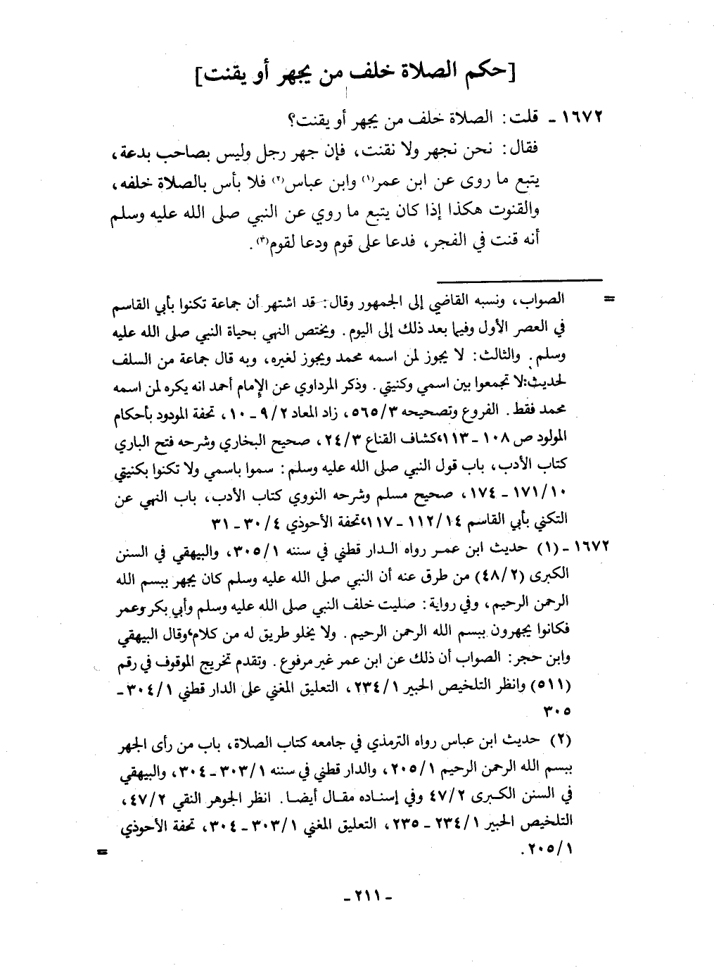 1672 - قلت الصَّلَاة خلف من يجْهر أَو يقنت
