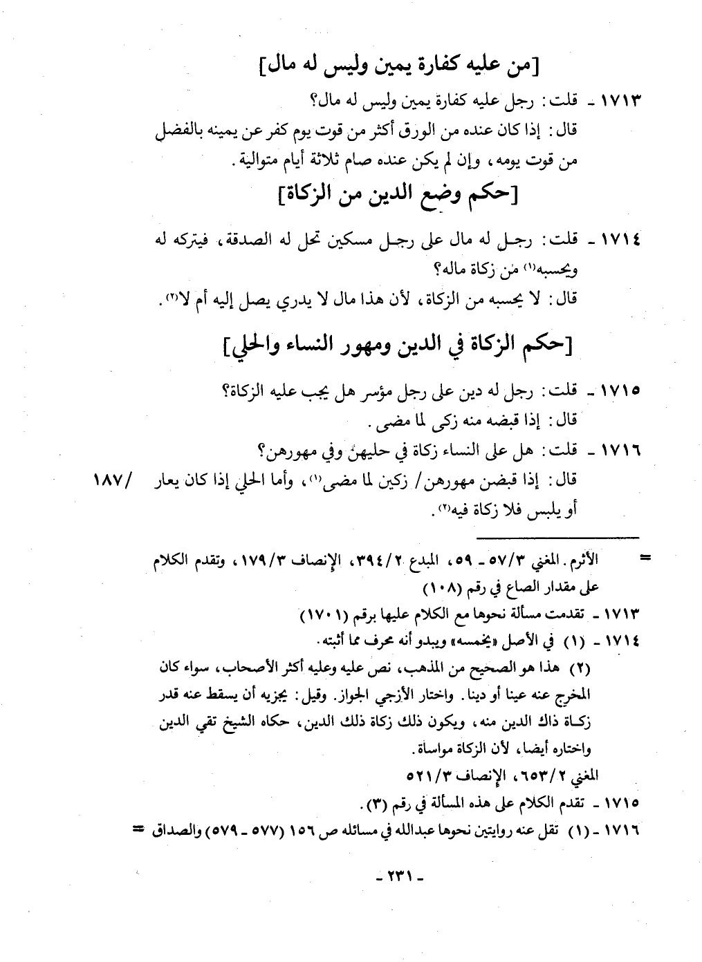 1715 - قلت رجل لَهُ دين على رجل مؤسر هَل يجب عَلَيْهِ الزَّكَاة