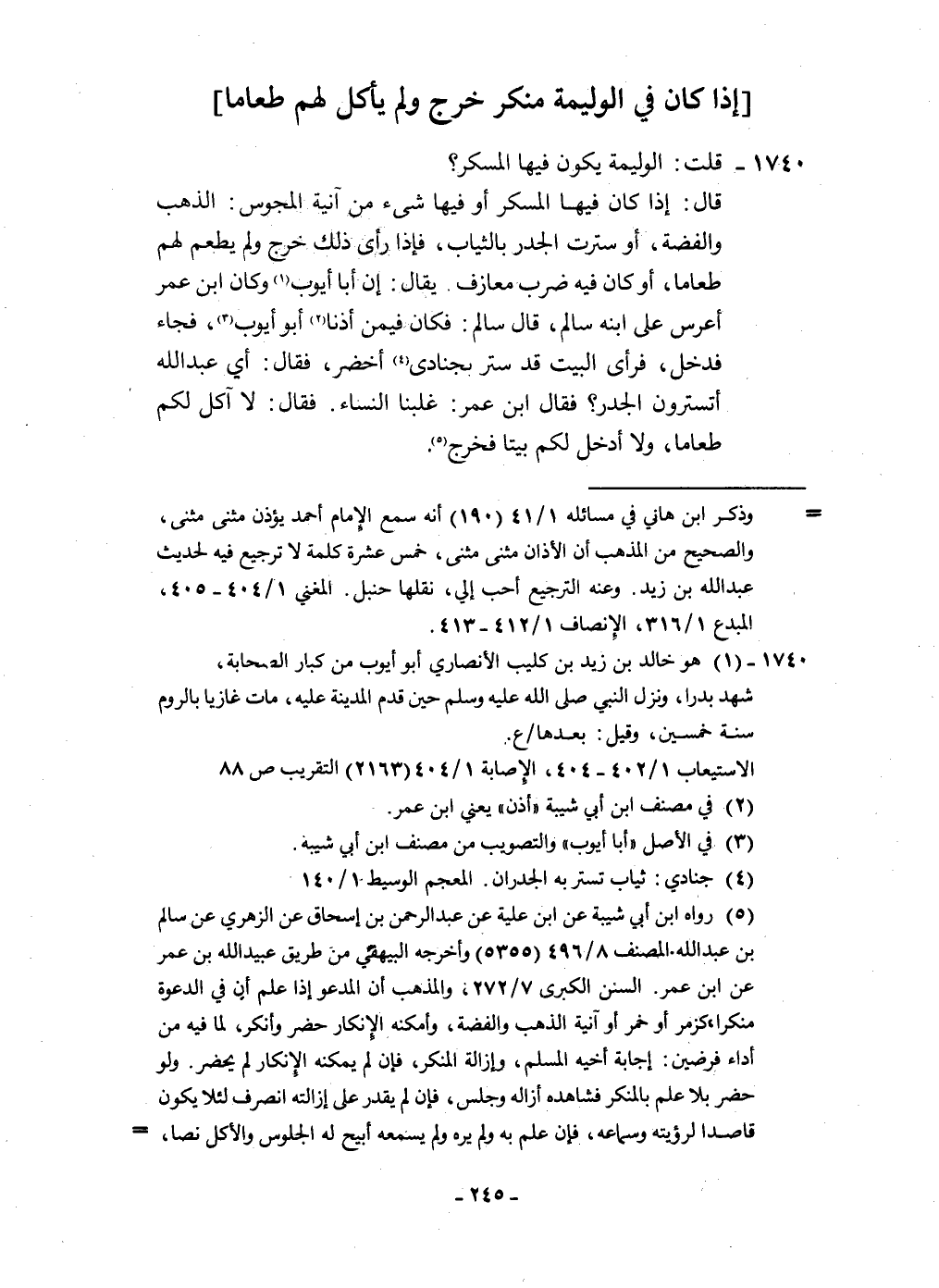 1740 - قلت الْوَلِيمَة يكون فِيهَا الْمُسكر