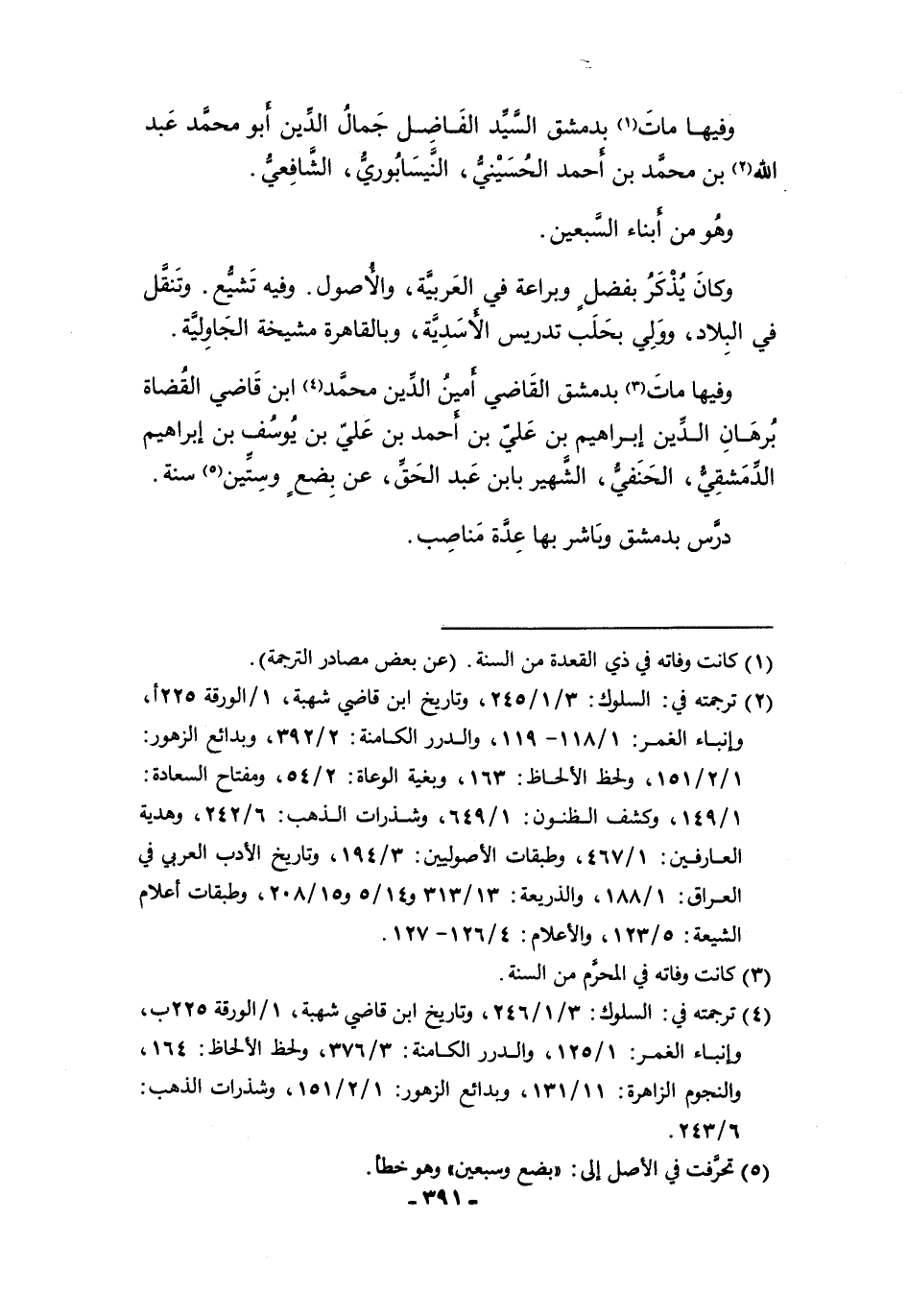 (¬١) كانت وفاته في ذي القعدة من السنة. (عن بعض مصادر الترجمة).