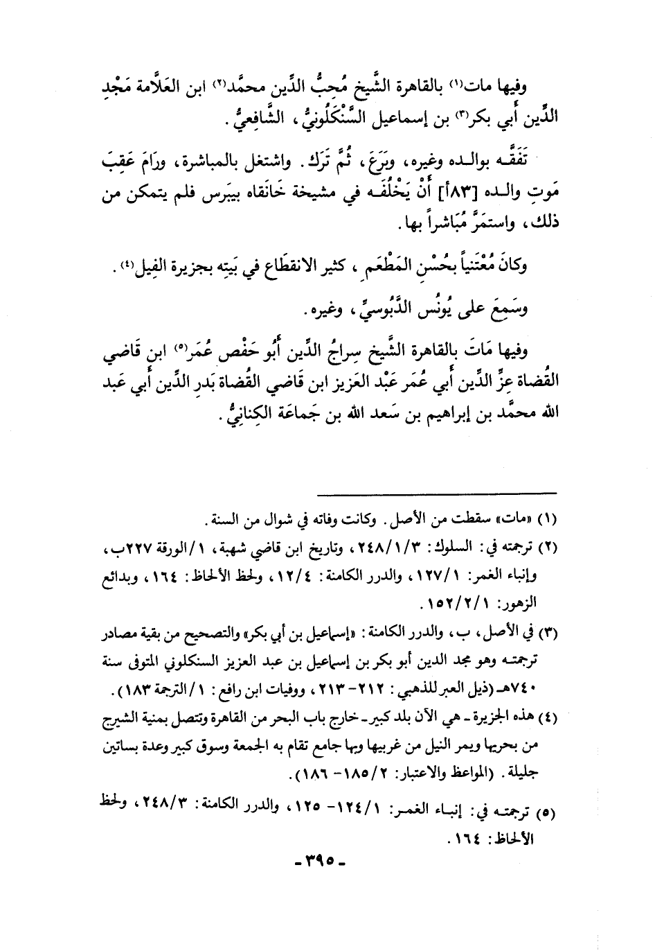 (¬٢) ترجمته في: السلوك: ٣/ ١/٢٤٨، وتاريخ ابن قاضي شهبة، ١/الورقة ٢٢٧ ب، وإنباء الغمر: ١/ ١٢٧، والدرر الكامنة: ٤/ ١٢، ولحظ الألحاظ: ١٦٤، وبدائع الزهور: ١/ ٢/١٥٢.