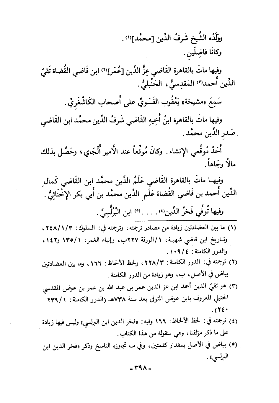 (¬١) ما بين العضادتين زيادة من مصادر ترجمته، وترجمته في: السلوك: ٣/ ١/٢٤٨، وتاريخ ابن قاضي شهبة، ١/الورقة ٢٢٧ ب، وإنباء الغمر: ١/ ١٣٥ و ١٤٢، والدرر الكامنة: ٤/ ١٠٩.