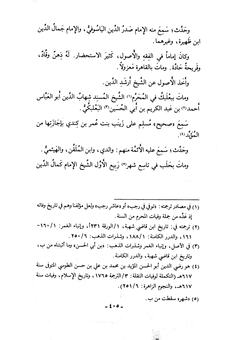 ومات بحلب في تاسع شهر (¬٥) ربيع الأوّل الشّيخ الإمام كمال الدّين