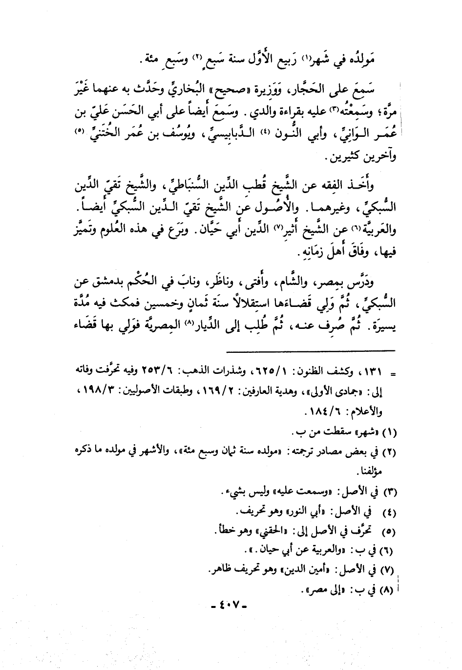 (¬٢) في بعض مصادر ترجمته: «مولده سنة ثمان وسبع مئة»، والأشهر في مولده ما ذكره مؤلفنا.