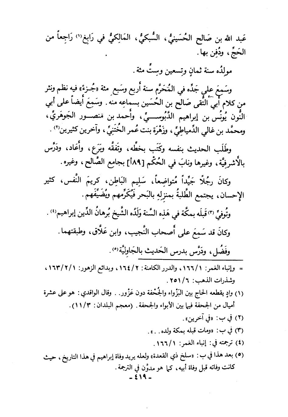 عبد الله بن صالح الحسينيّ، السّبكيّ، المالكيّ في رابغ (¬١) راجعا من الحجّ، ودفن بها.