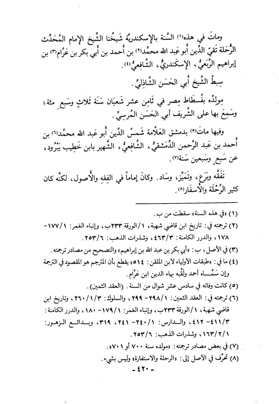 الرّحلة تقيّ الدّين أبو عبد الله محمّد (¬٢) بن أحمد بن أبي بكر بن عرّام (¬٣) بن
