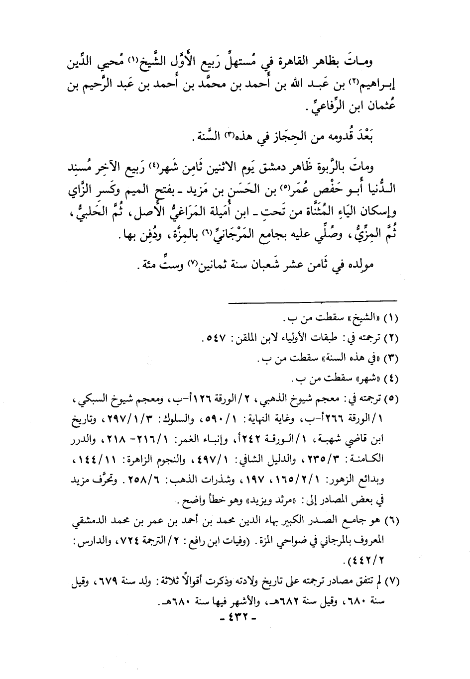 (¬٧) لم تتفق مصادر ترجمته على تاريخ ولادته وذكرت أقوالا ثلاثة: ولد سنة ٦٧٩، وقيل سنة ٦٨٠، وقيل سنة ٦٨٢ هـ، والأشهر فيها سنة ٦٨٠ هـ.