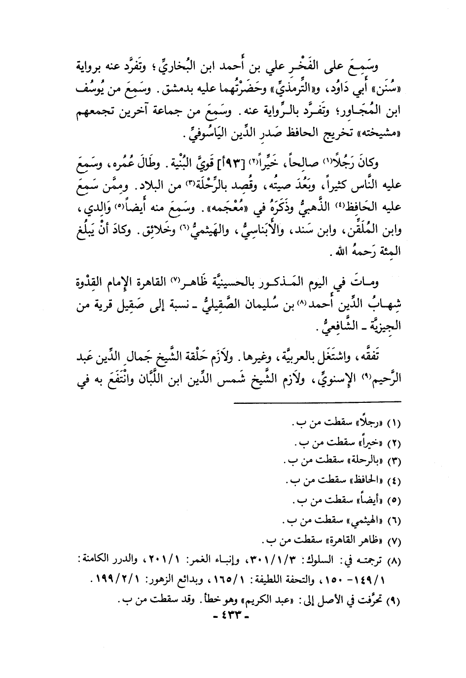 (¬٨) ترجمته في: السلوك: ٣/ ١/٣٠١، وإنباء الغمر: ١/ ٢٠١، والدرر الكامنة: ١/ ١٤٩ - ١٥٠، والتحفة اللطيفة: ١/ ١٦٥، وبدائع الزهور: ١/ ٢/١٩٩.