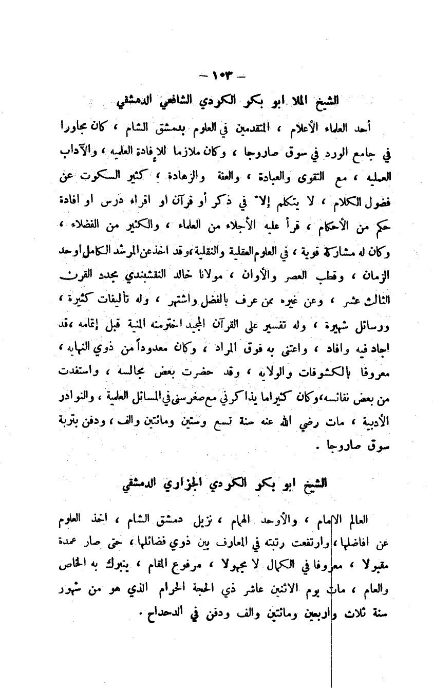 الشيخ الملا أبو بكر الكردي الشافعي الدمشقي