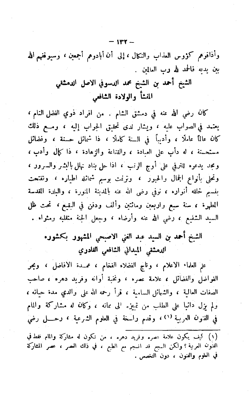 الشيخ أحمد بن الشيخ محمد الدسوقي الأصل الدمشقي المنشأ والولادة الشافعي