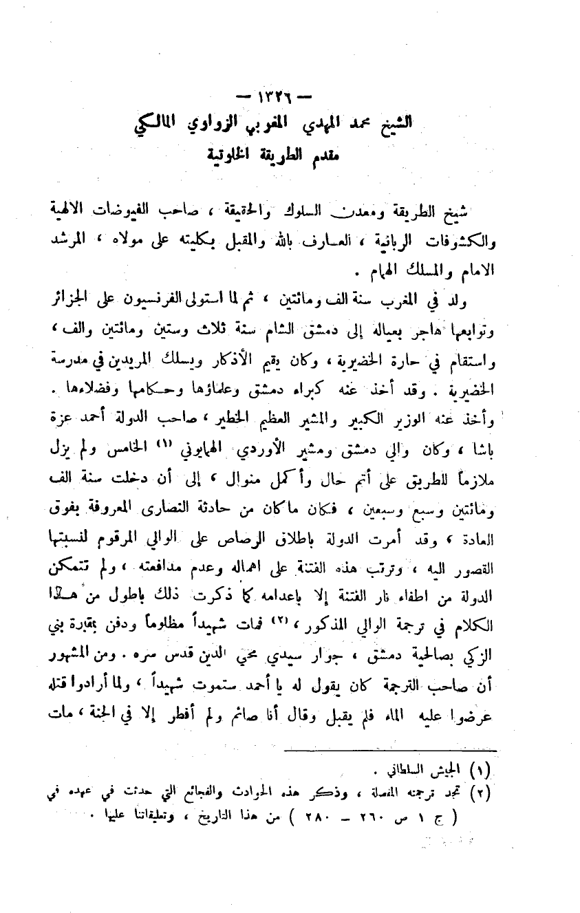 الشيخ محمد المهدي المغربي الزواوي المالكي مقدم الطريقة الخلوتية