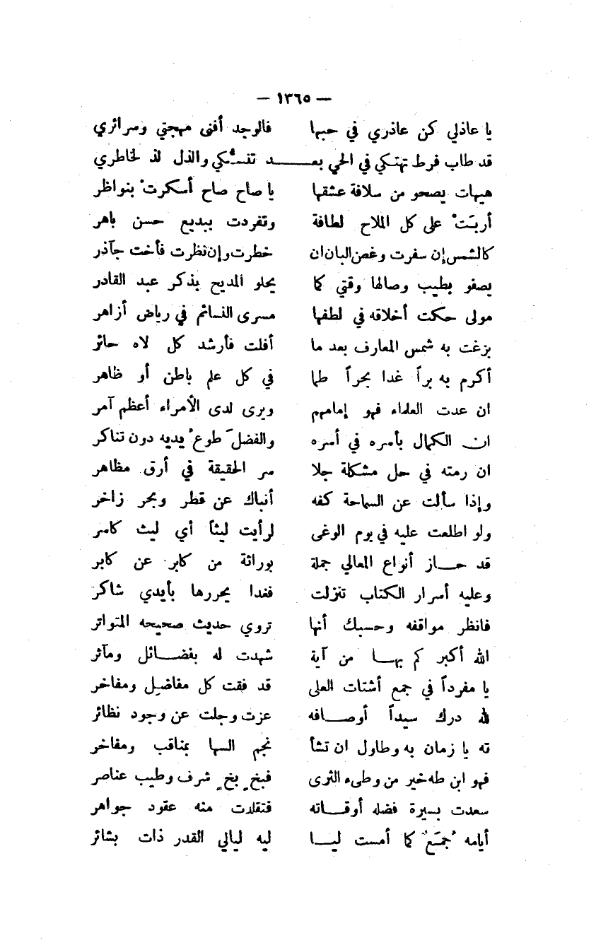 يصفو بطيب وصالها وقتي كما ... يحلو المديح بذكر عبد القادر